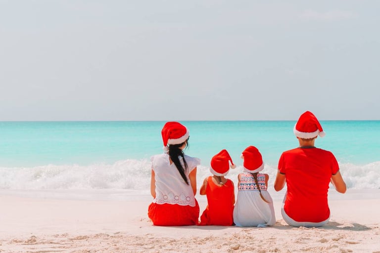 Visite du Père Noël : Contrairement à certaines régions métropolitaines, le Père Noël peut être accompagné de musique tropicale et arriver en bateau ou sur un char fleuri !